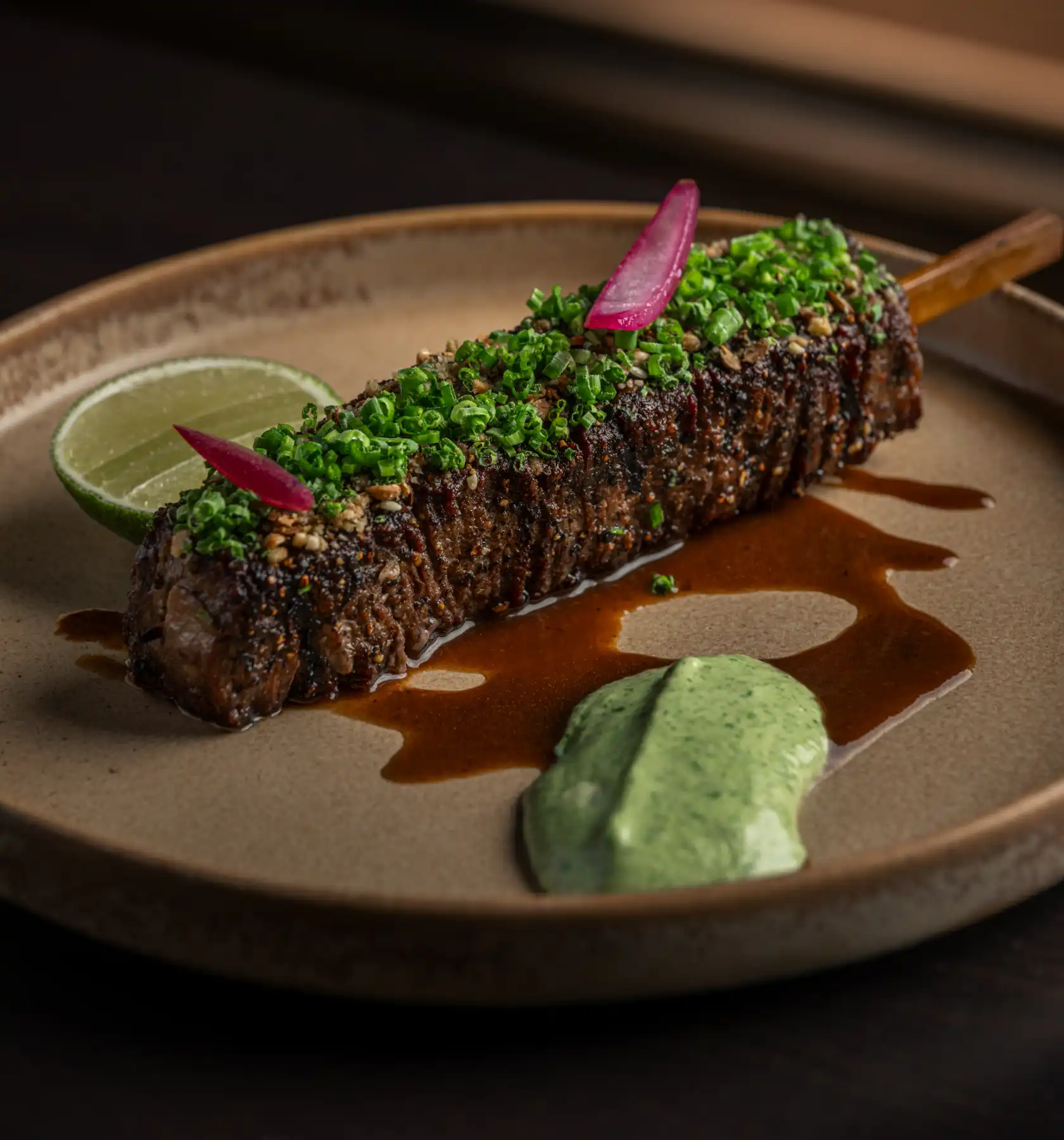 spiced Australian beef tenderloin, dukkah, coriander lime aioli, pickled onions